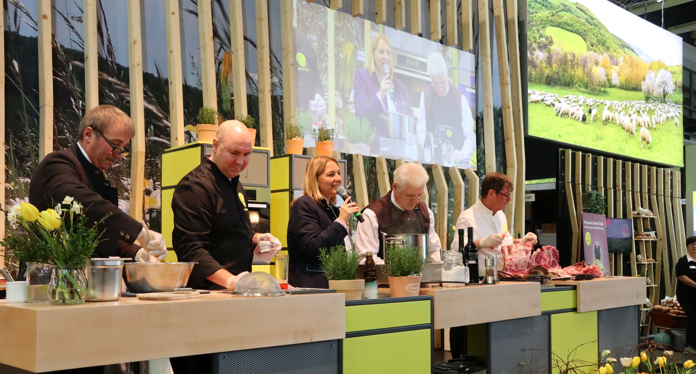 Gemeinsam mit der MBW Marketinggesellschaft Baden-Württemberg, der TMBW Tourismus-Marketing Baden-Württemberg sowie weiteren Ausstellern aus dem ganzen Land präsentierte das MLR kulinarische Highlights aus dem Ländle. Neben den regionalen Klassikern Käsespätzle und Maultaschen mit Kartoffelsalat, Linsen mit Spätzle und Krautschupfnudeln, wurden ebenso exzellente Milchprodukte sowie ausgezeichnete Wurstspezialitäten angeboten. Dazu passend konnten Weine aus den beiden Anbaugebieten Baden und Württemberg sowie regionale Bierspezialitäten verkostet werden. Weitere kulinarische Highlights waren die verschiedenen Obst- und Gemüsesorten vom Bodensee.