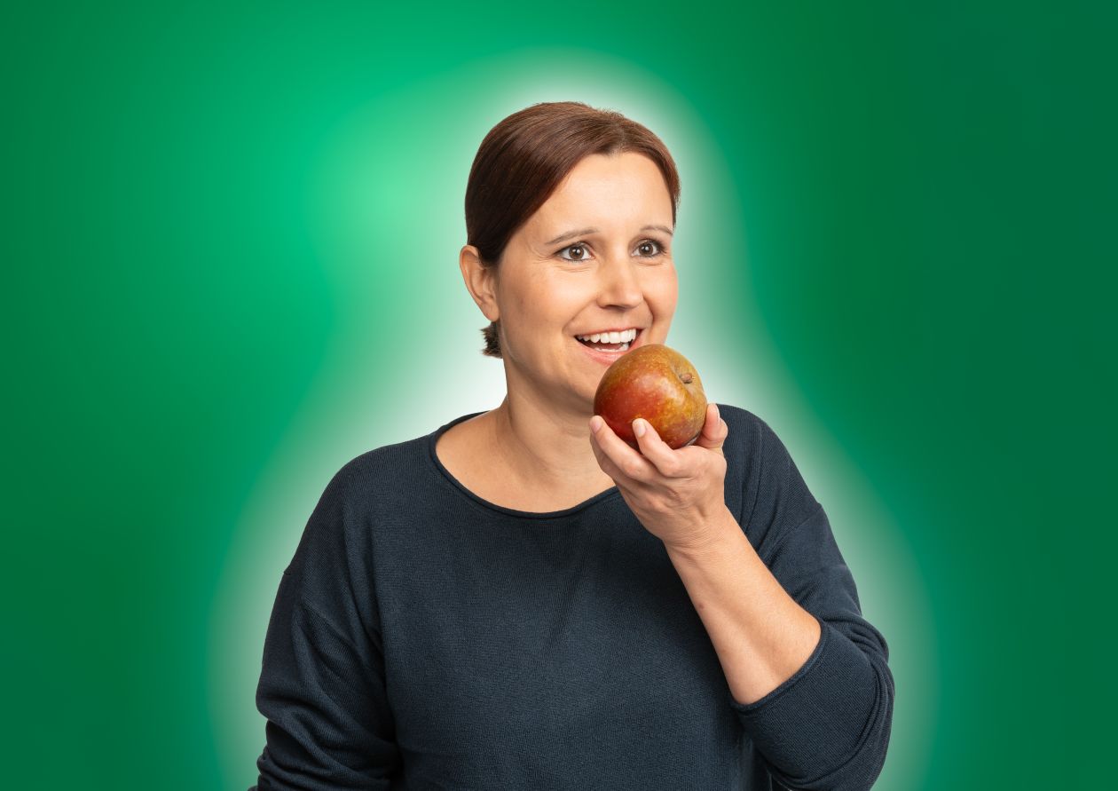 Unsere Ernährungsbotschafterin Melanie Michel steht für den 1. Leitsatz "Ernährungswissen für alle weitergeben".